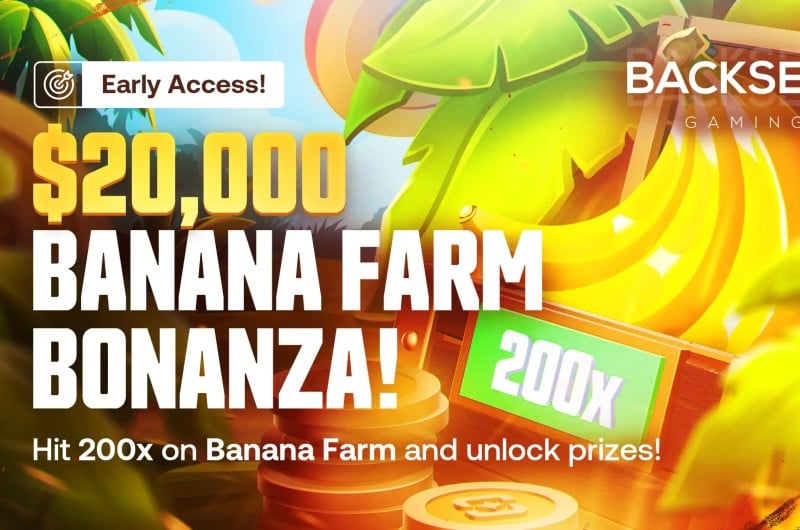 Simply play Backseat Gaming's new Banana Farm slot, hit a 200x multiplier (or higher), and claim your share of the prize pot.