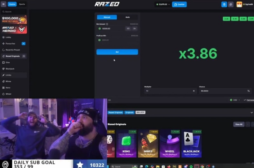 While playing Razed Originals ‘Limbo’, he put $10,000 on the line for the chance to win $11,000 back, including his stake - just a $1,000 profit from a $10K risk.