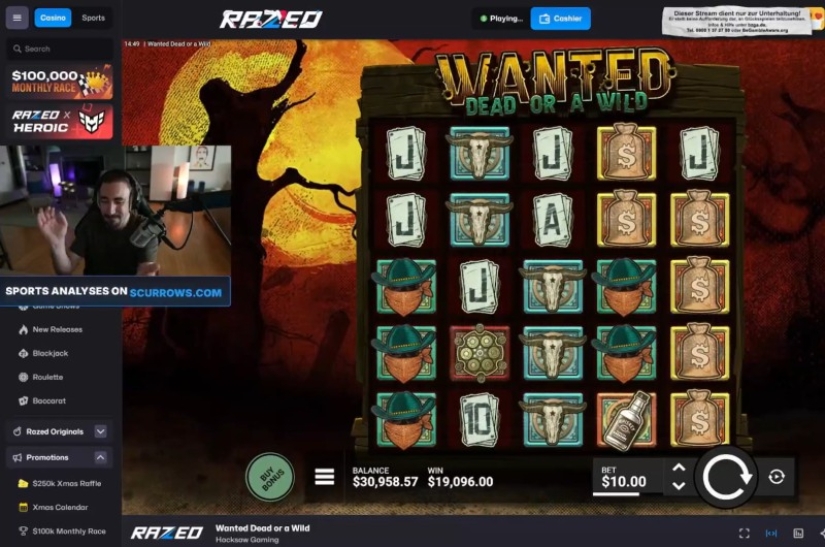 It was Scurrows who, after placing a $10 bet, entered the Hacksaw Gaming slot’s “Duel at Dawn” bonus round, where he was to receive 10 Free Spins.