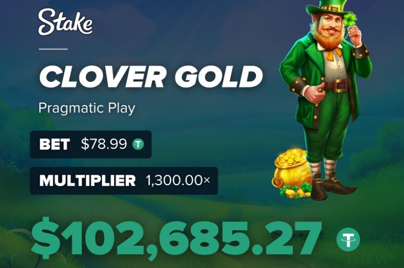 - Stake.com player wins 102,685.27 USDT on Clover Gold slot.
