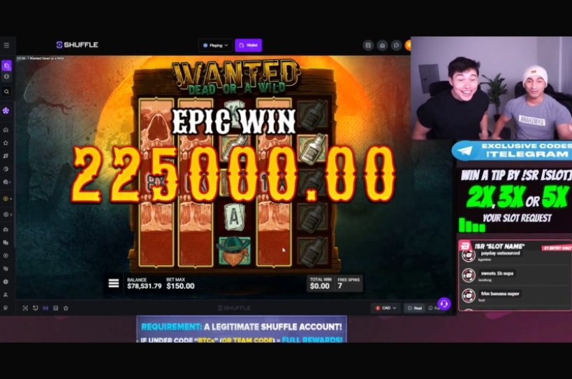 - BtcsTv wins $225K playing 'Wanted Dead or a Wild' at Shuffle Casino.