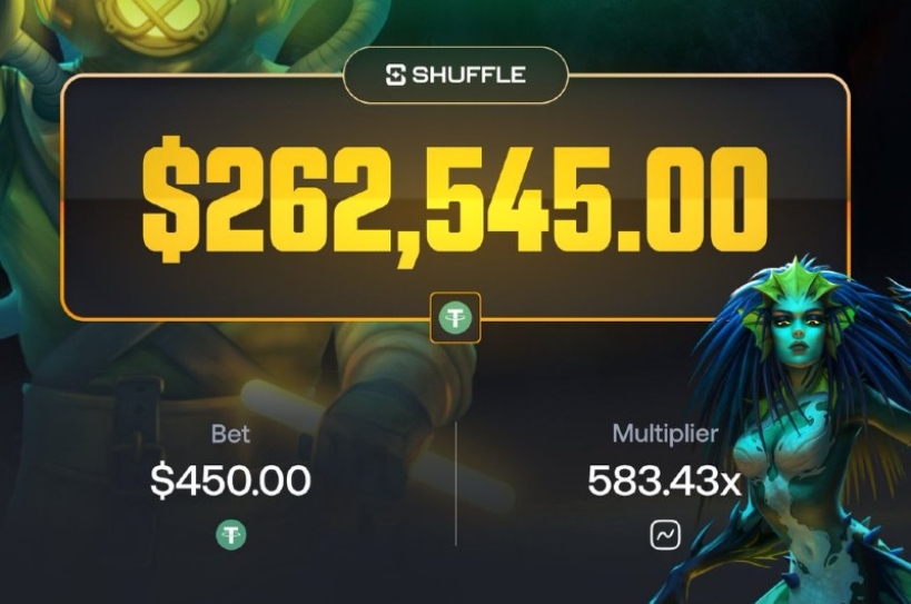 - Shuffle player wins $262,545 from $450 USDT bet.