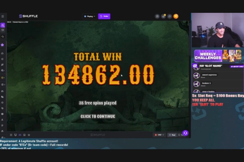 Shuffle and Hacksaw Gaming has proven to be a killer combo once again as BTCsTv managed to secure a $134,862.00 Big Win while playing the popular “Wanted Dead or a Wild” slot.