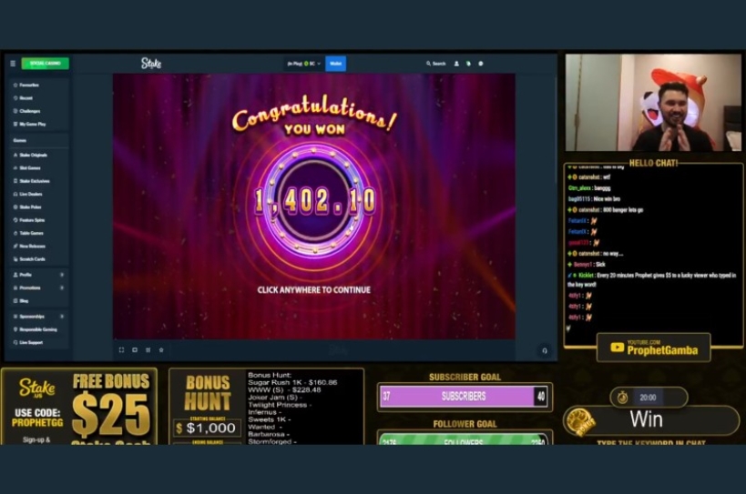 During a gaming session on Stake.US, Kick streamer Prophets GG was able to showcase the platform’s latest Big Win as he converted a 2 SC bet into 1,402.10 SC.