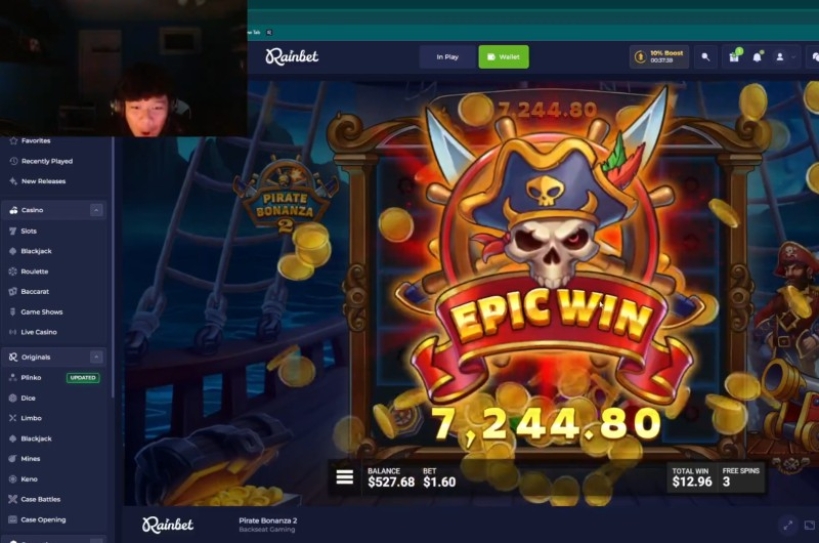 - Streamer itsj1ng won $7,244.80 from a $1.60 bet on Pirate Bonanza 2.