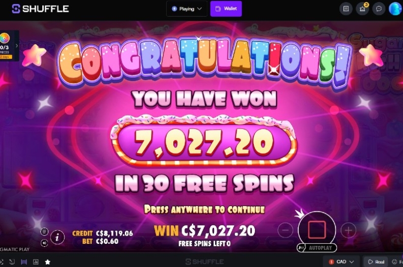 New players who want to explore Sugar Rush 1000 or similar games can check out Shuffle.com using the Shuffle bonus code “HUGE” for a welcome bonus when signing up.