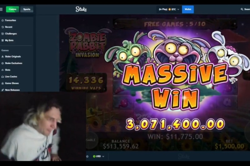 Popular internet figure xQc wins more than $3M while playing “Zombie Rabbit Invasion” by Massive Studios at Stake.com.