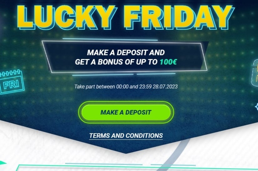Participating in Lucky Friday simply involves making a deposit of at least €1 into your account on Friday, where your bonus will be automatically credited alongside the deposit itself.