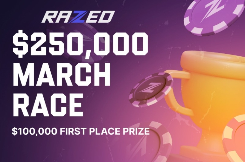 Rake in up to $100,000 all for yourself by taking part in the March Race at Razed. $250,000 will be split between 100 lucky players.