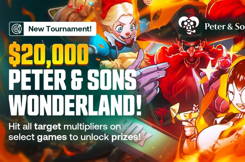 Complete all seven multiplier challenges in the Peter & Sons Wonderland tournament at Shuffle.com to earn a share of the $20,000 prize pool.