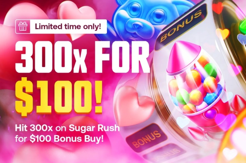 To get one this weekend, all you need to do is play Sugar Rush from Pragmatic Play with a minimum bet of at least $0.40. If you can hit a multiplier of at least 300x, you’ll win a $100 Bonus Buy.